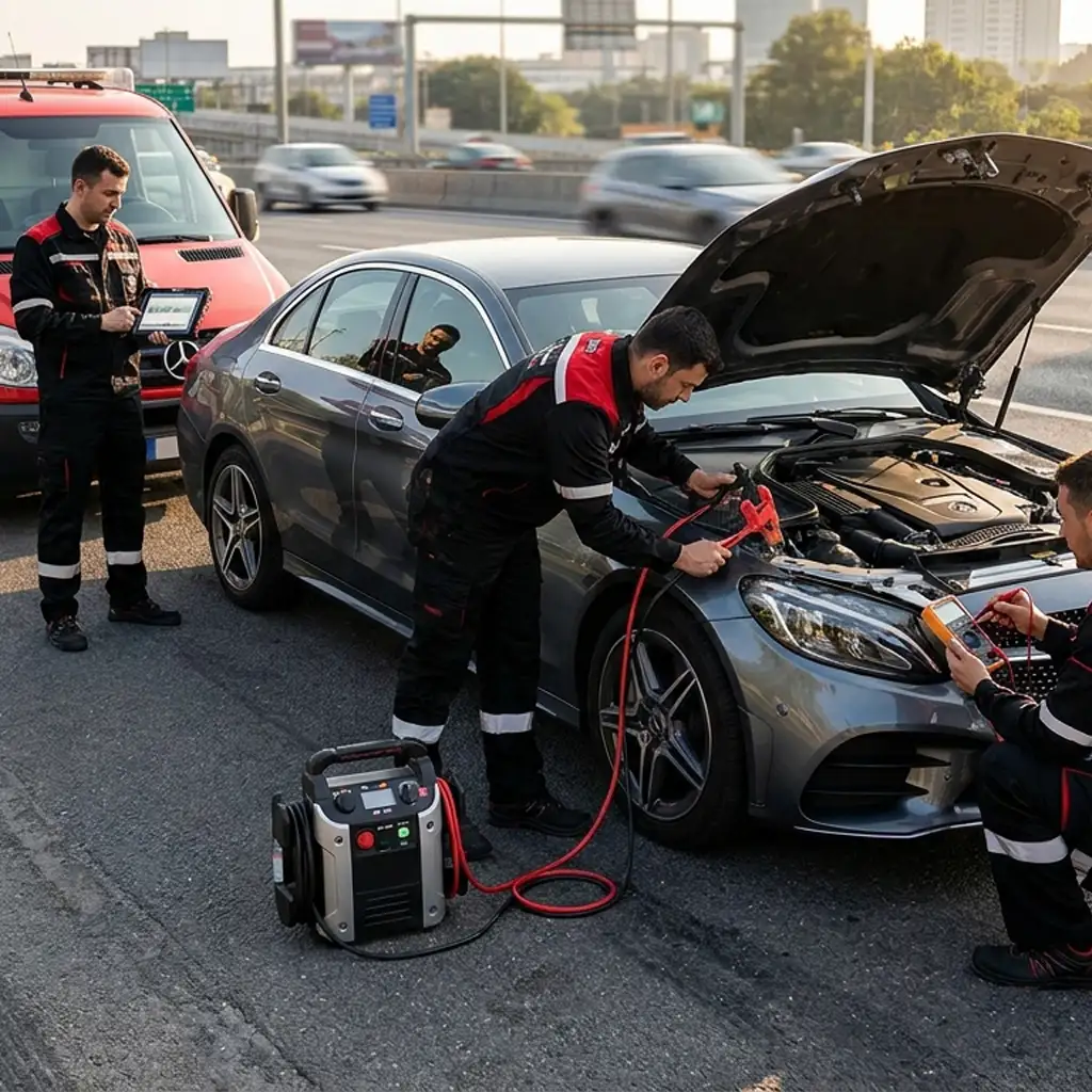 “Total power loss developed in the Mercedes-Benz after several months of dormancy near Emirates Hills Villas. Voltage-controlled recovery reinstated full engine operation and Xentry confirmed a module wake fault as the discharge source in the same visit.”