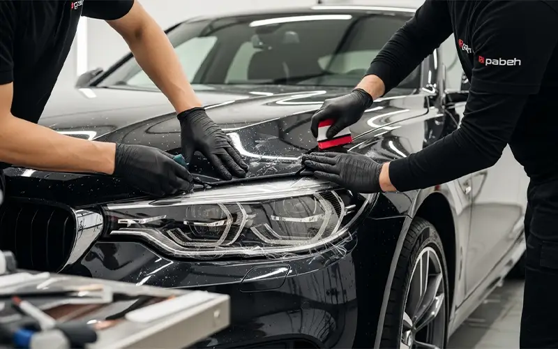 Apply self-healing paint protection film to BMW, Mercedes-Benz, Audi, and Porsche body panels using computer-cut patterns matched to factory panel dimensions for complete edge coverage and invisible surface protection against UV degradation and heat-induced paint damage during extended storage.