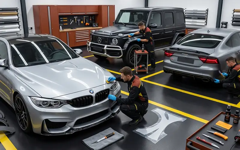 High-quality PPF or vinyl films shield against scratches, stone chips, and environmental hazards while preserving gloss and factory color.