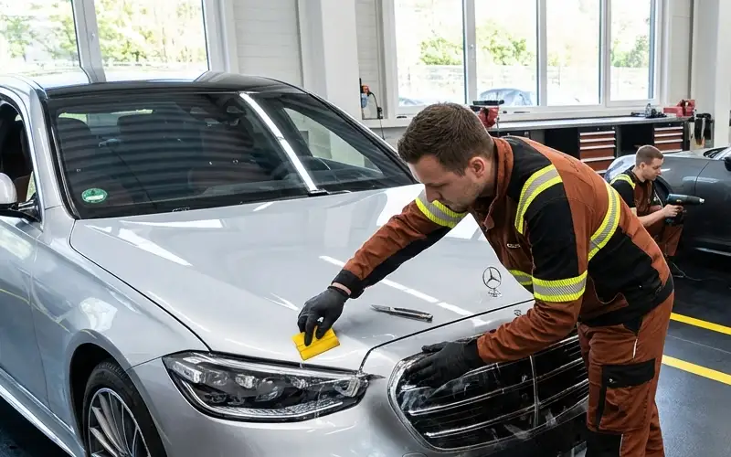 Protect factory paint and prevent stone chips, UV damage, and surface abrasion with German car paint protection film (PPF) installation in Dubai for BMW, Mercedes-Benz, Audi, Porsche, and Volkswagen. At German Car Expert, precision-cut polyurethane film application shields high-impact panels, stabilizes paint integrity, and preserves exterior finish under extreme Dubai driving conditions.