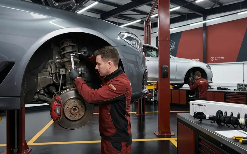 Replace failing shocks to improve ride comfort, braking stability, and highway confidence for BMW and Mercedes-Benz cars.