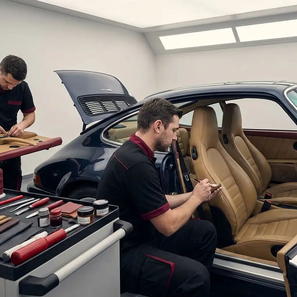 Diagnose and restore UV-bleached, humidity-split, and heat-cracked leather surfaces on BMW, Mercedes-Benz, Audi, and Porsche seats using brand-matched leather compounds and manufacturer-approved conditioning treatments.